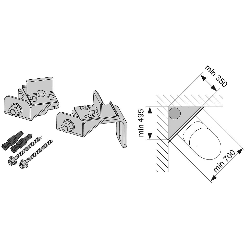 - Полный набор крепёжных элементов — для монтажа перед стеной. Всё необходимое — в одной коробке.