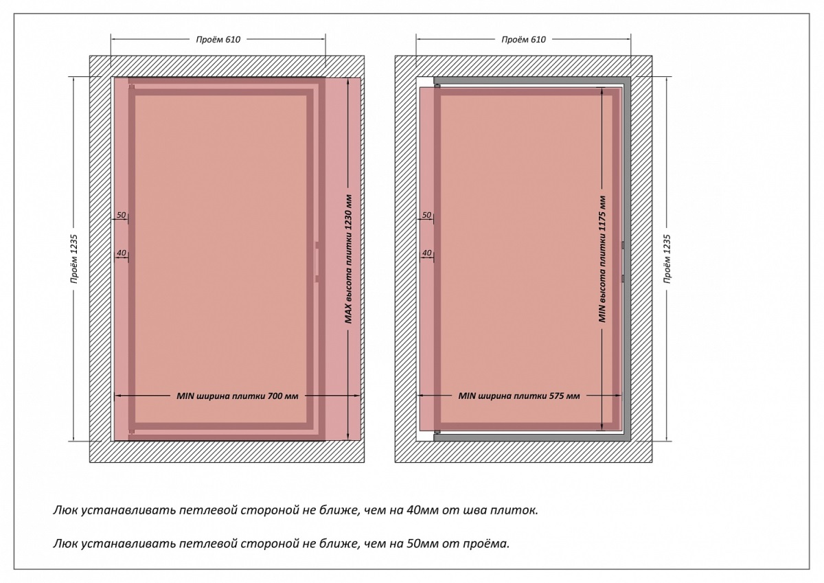 - Эстетика и дизайн: Благодаря возможности облицовки плиткой, люк абсолютно незаметен на фоне стены, сохраняя единый стиль интерьера.